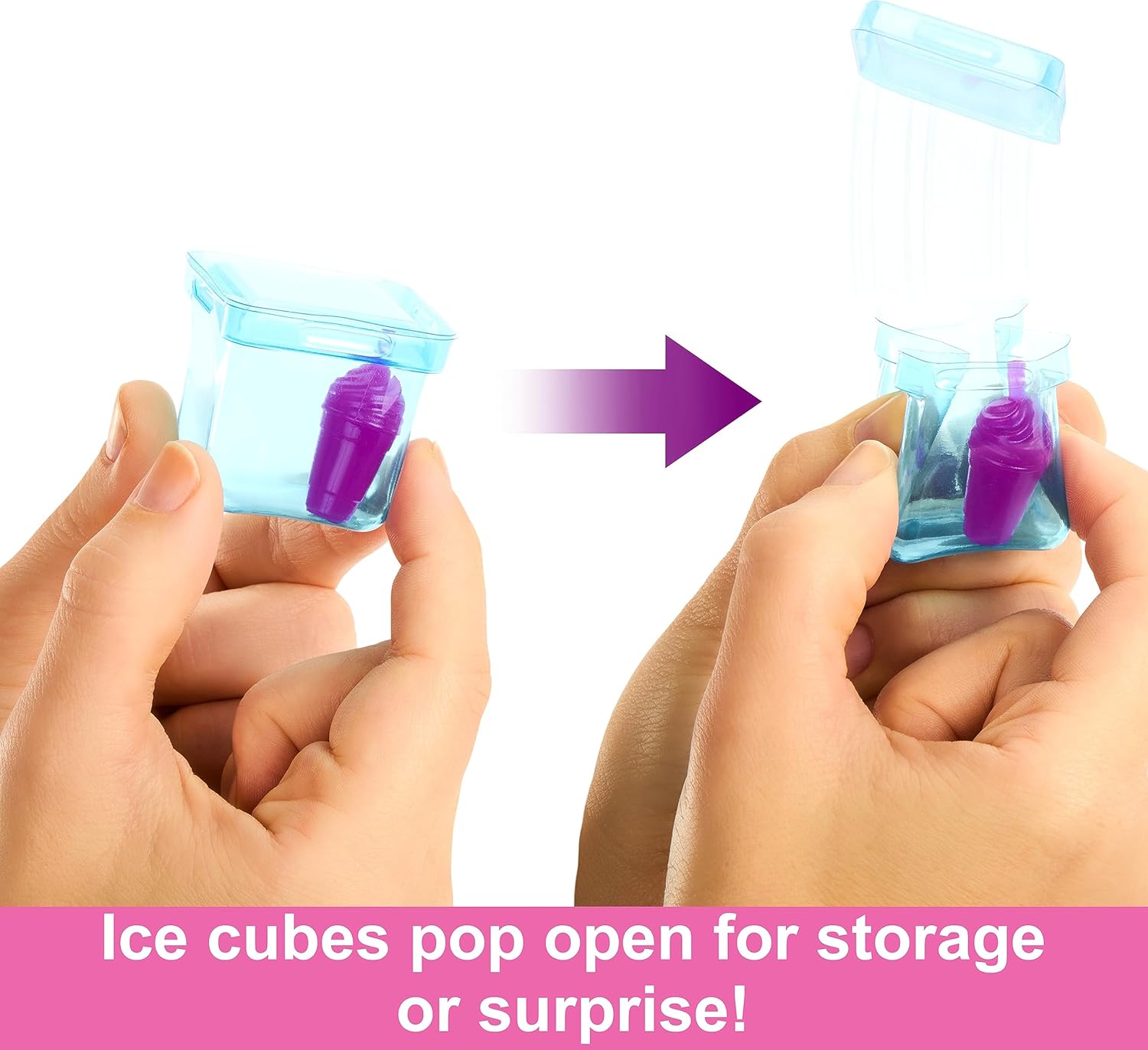 Descubre piezas adicionales dentro de los cubitos de hielo que realmente se abren, como una mini bebida esponjosa y patines para muñecas Barbie – utilícelo para almacenamiento o repetir revelaciones