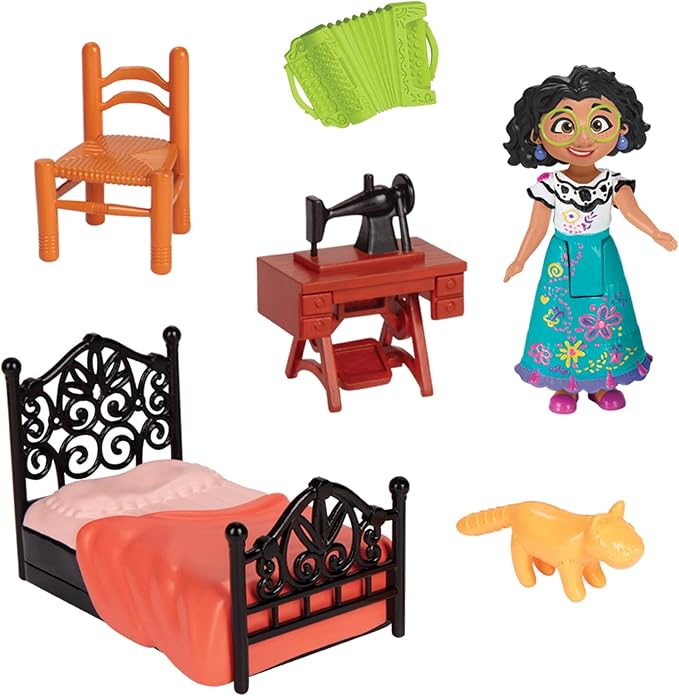 - Incluye: 1 juego Mirabel Room, 1 muñeca pequeña Mirabel, 1 cama, 1 silla, 1 mesa de costura, 1 Jaguar y 1 acordeón. Sugerido para mayores de 3 años