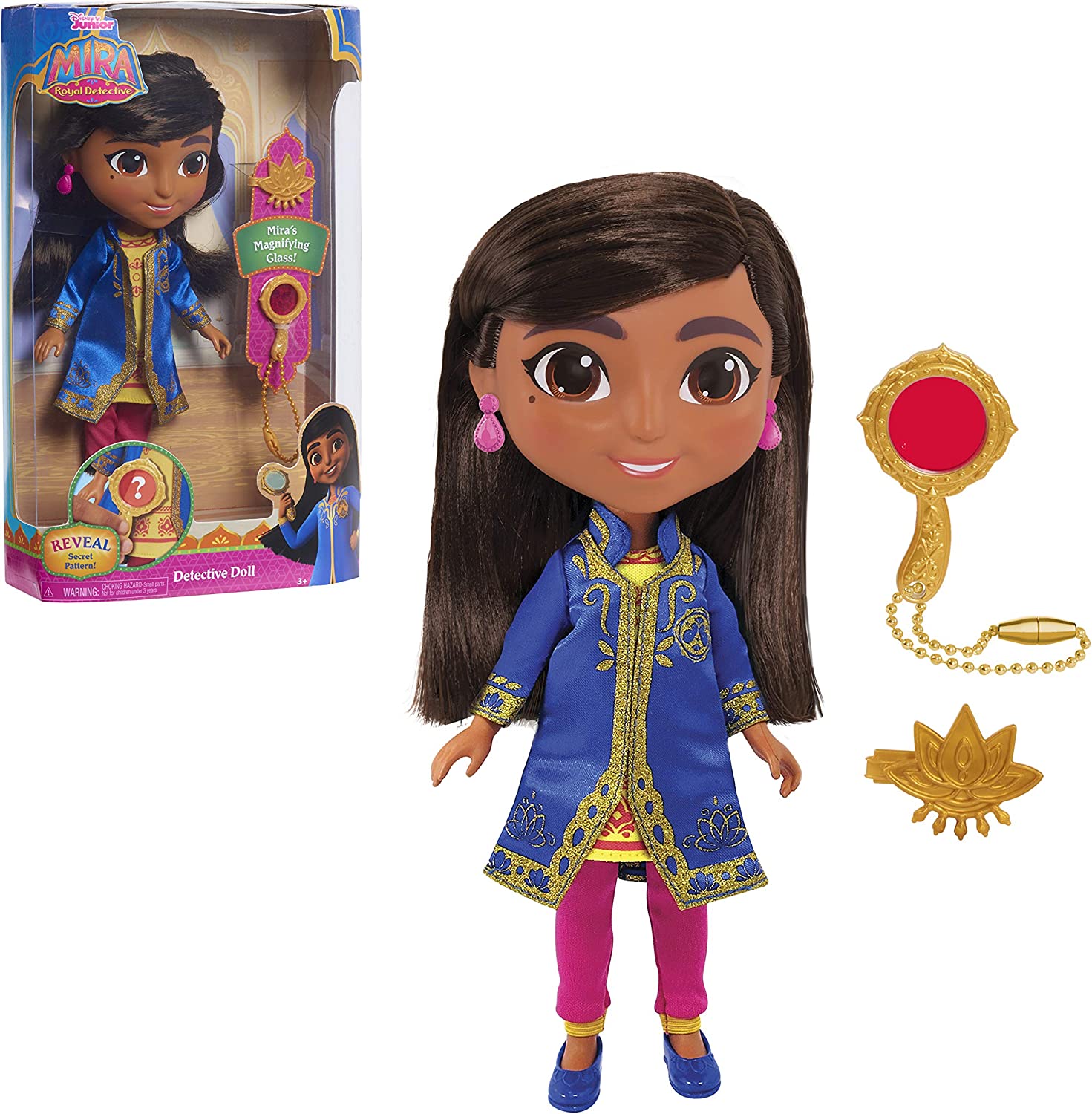 - Descubre aventuras divertidas con la muñeca Mira Royal Detective, inspirada en el nuevo programa de Disney Junior, Mira Royal Detective. De pie mide 25 cm de alto.