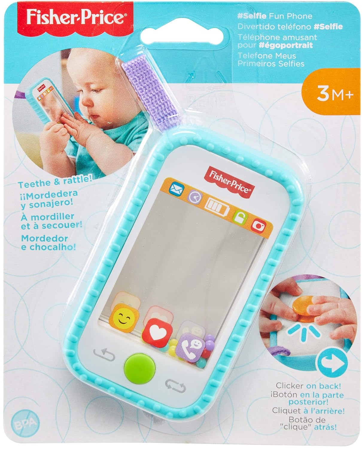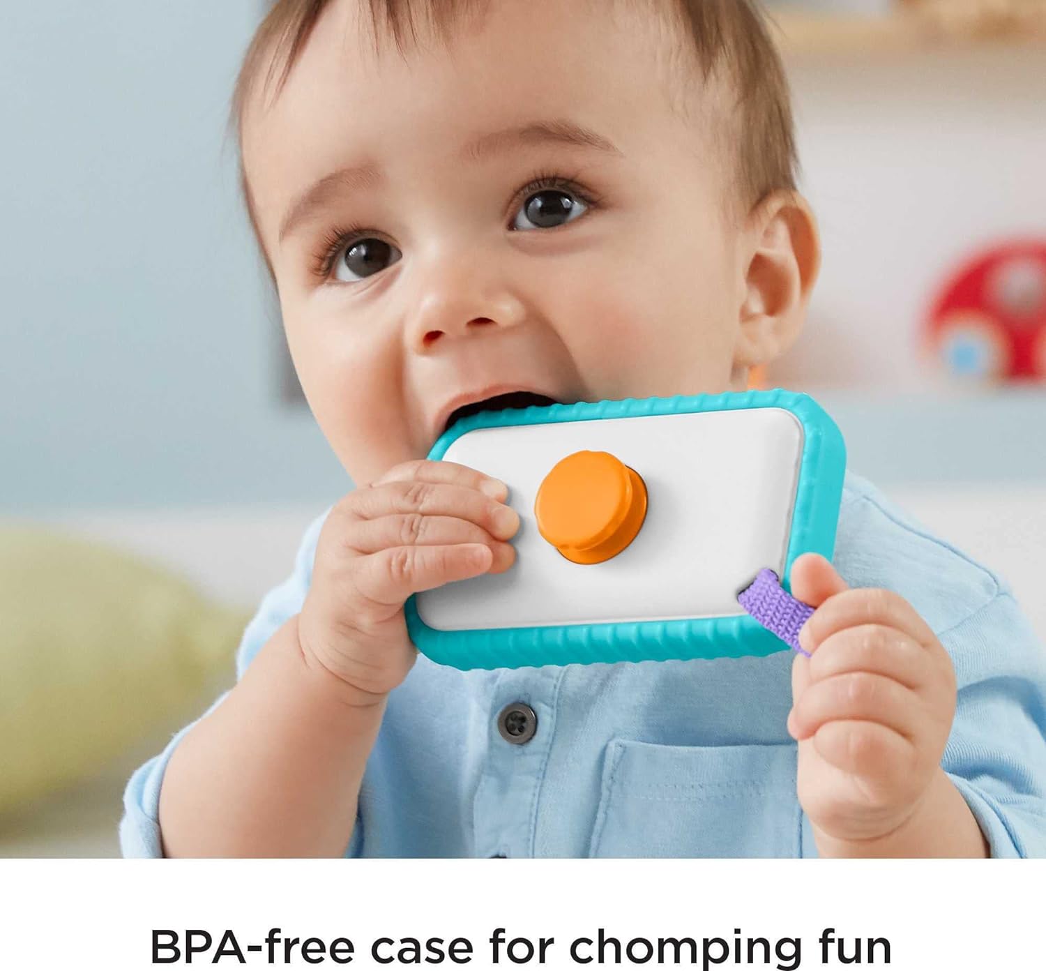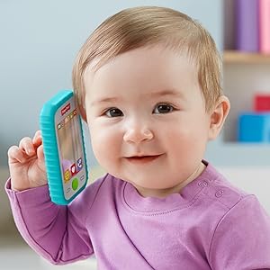 Con este divertido teléfono Fisher-Price tu pequeño podrá: Morder, Sacudir, Presionar y hasta hacerse un selfie.