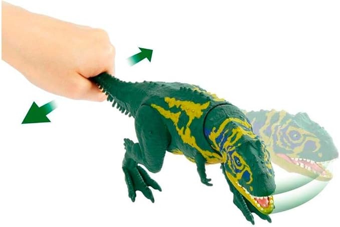 - ¡Acción realista! La activación de la rueda giratoria en esta figura de dinosaurio terópodo se puede girar hacia adelante o hacia atrás para crear un movimiento realista continuo de su cabeza y su ataque masivo de mordida