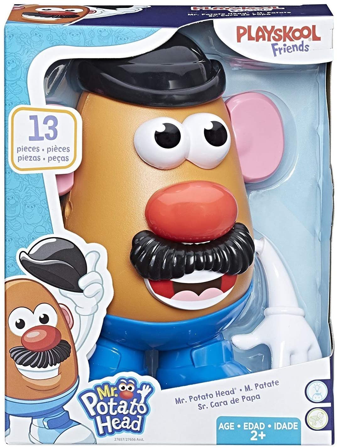 - La figura de Mr. patata viene con ojos, nariz, boca con dientes, sombrero, bigote, lengua, par de gafas, 2 manos, 2 orejas y 1 par de piernas con zapatos. 13 piezas en total.