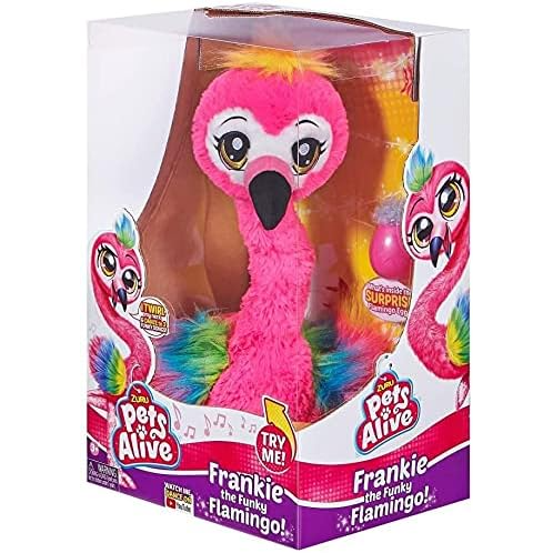 - El paquete incluye: 1 x Pets Alive Frankie The Funky Flamingo, 1 manual de instrucciones, 2 pilas y huevo sorpresa de flamenco